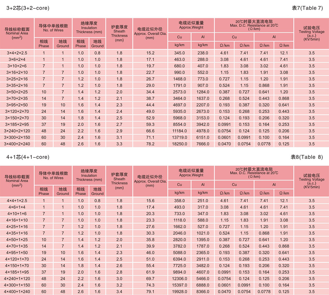 0.6/kV PV℃絕緣PV℃護套阻燃或非阻燃91视频下载地址(見表1-8)